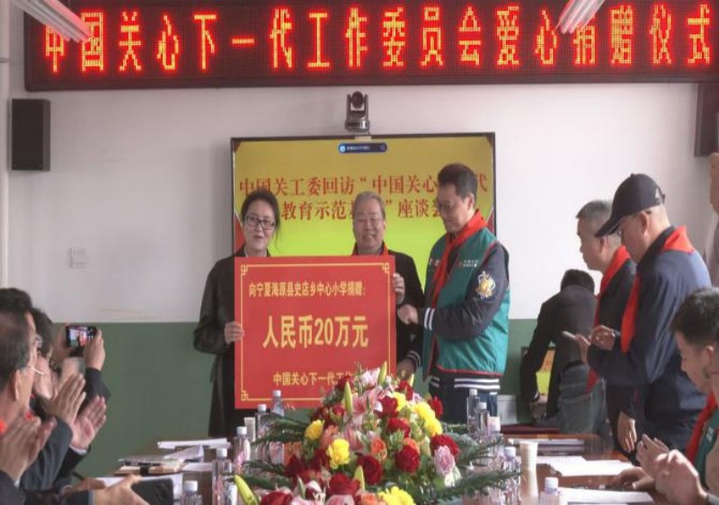 实地调研结束后,史店乡中心小学副校长马德珍围绕教师队伍建设、青少年法治教育、学生关爱等方面作了汇报。黄长庆对学校“小切口做优大教育”实践予以了肯定,点赞“红色资源+乡土特色”品牌思路。自治区、市关工委负责同志也就做好关工委工作进行了交流。随后,中国关工委、中国信托慈善基金会向史店乡中心小学捐赠20万元人民币用于开展后续教育工作。
